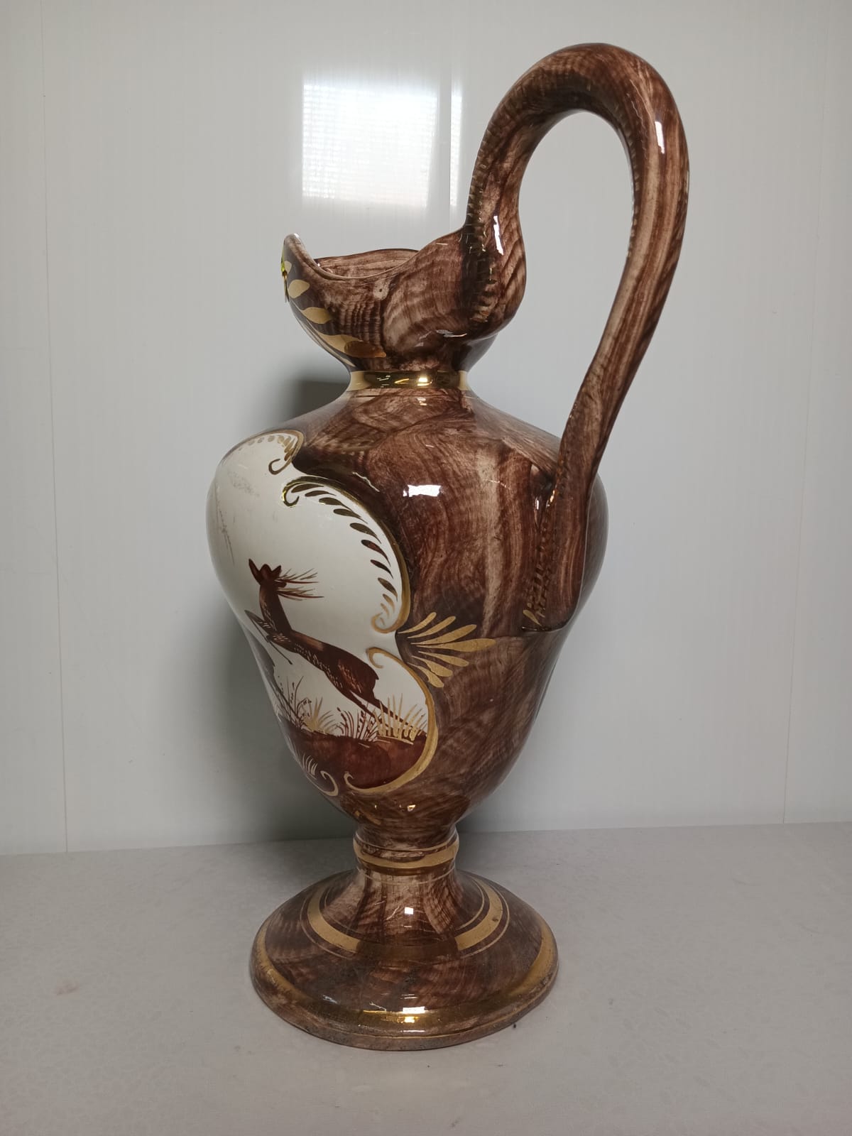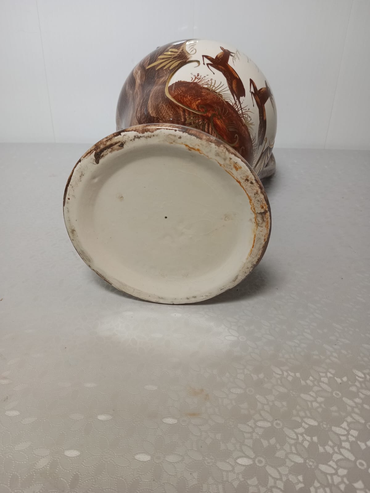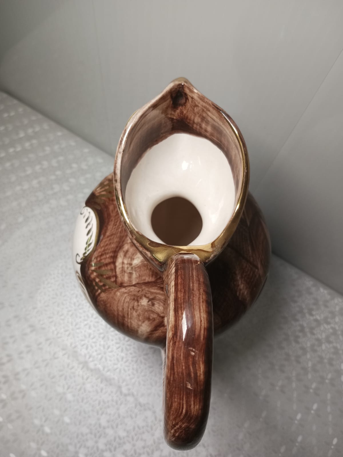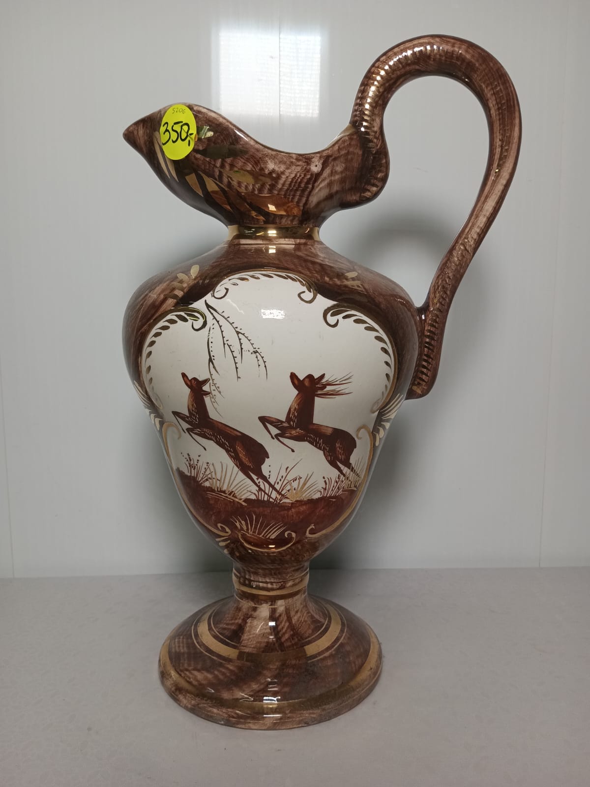Piękny dzban wykonany z porcelany. Ozdabia go malowidło z motywem łowieckiem.