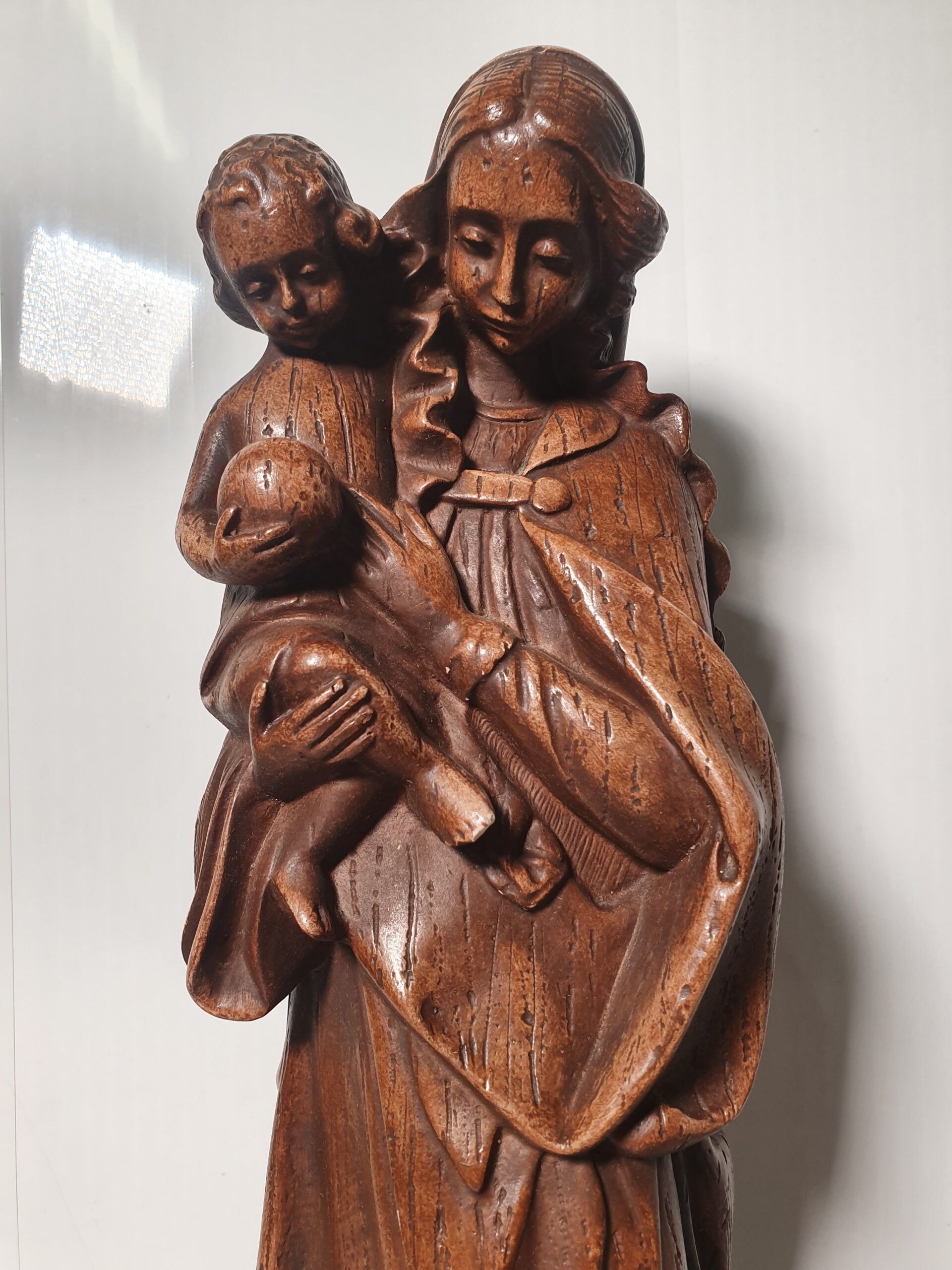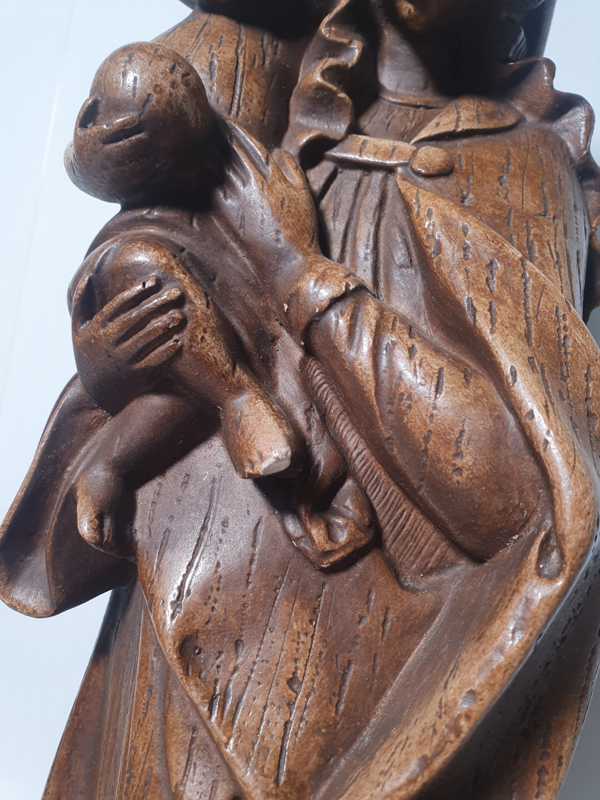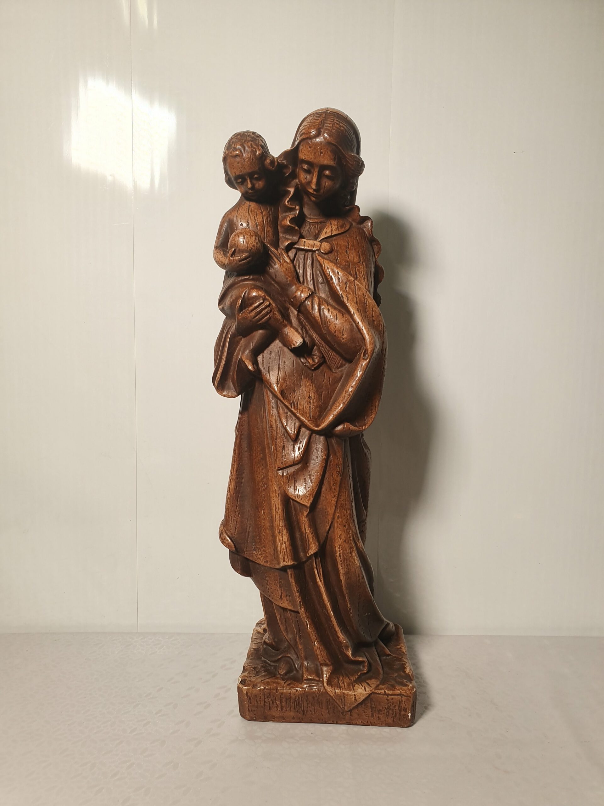 Piękna figura Matki Boskiej trzymającej na rękach Jezusa. Figura wykonana z gipsu.