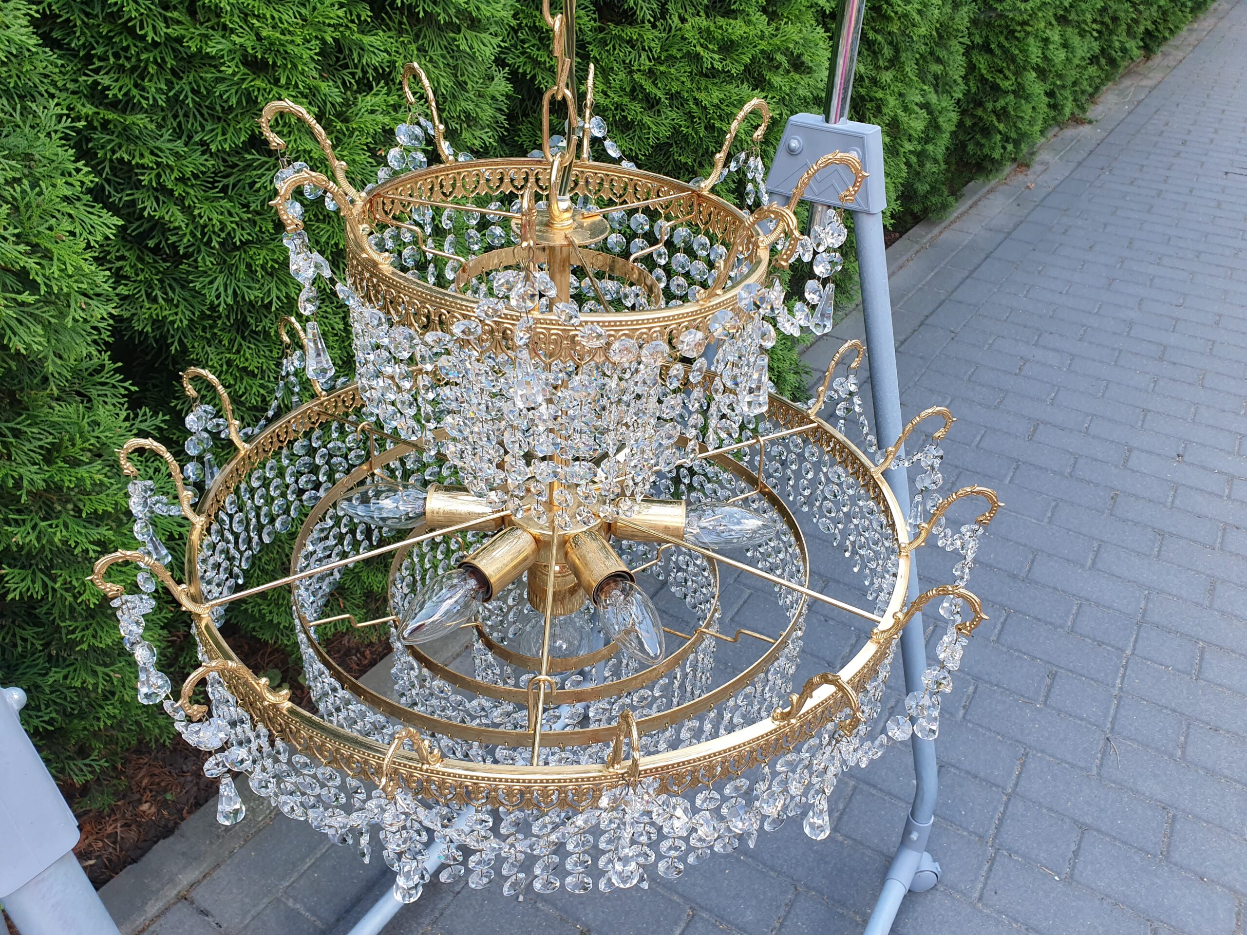 Przepiękny kryształowy żyrandol. Przedmiot wspaniale się prezentuje i naprawdę robi wrażenie. Wystarczy wkręcić 7 żarówek.