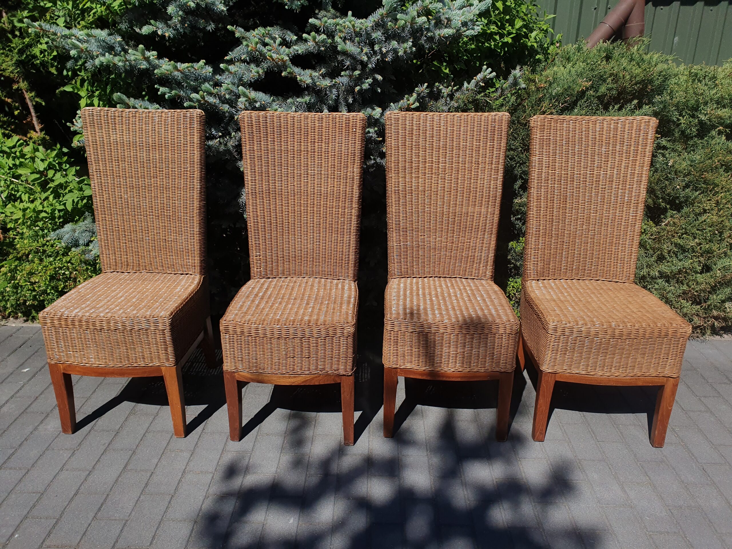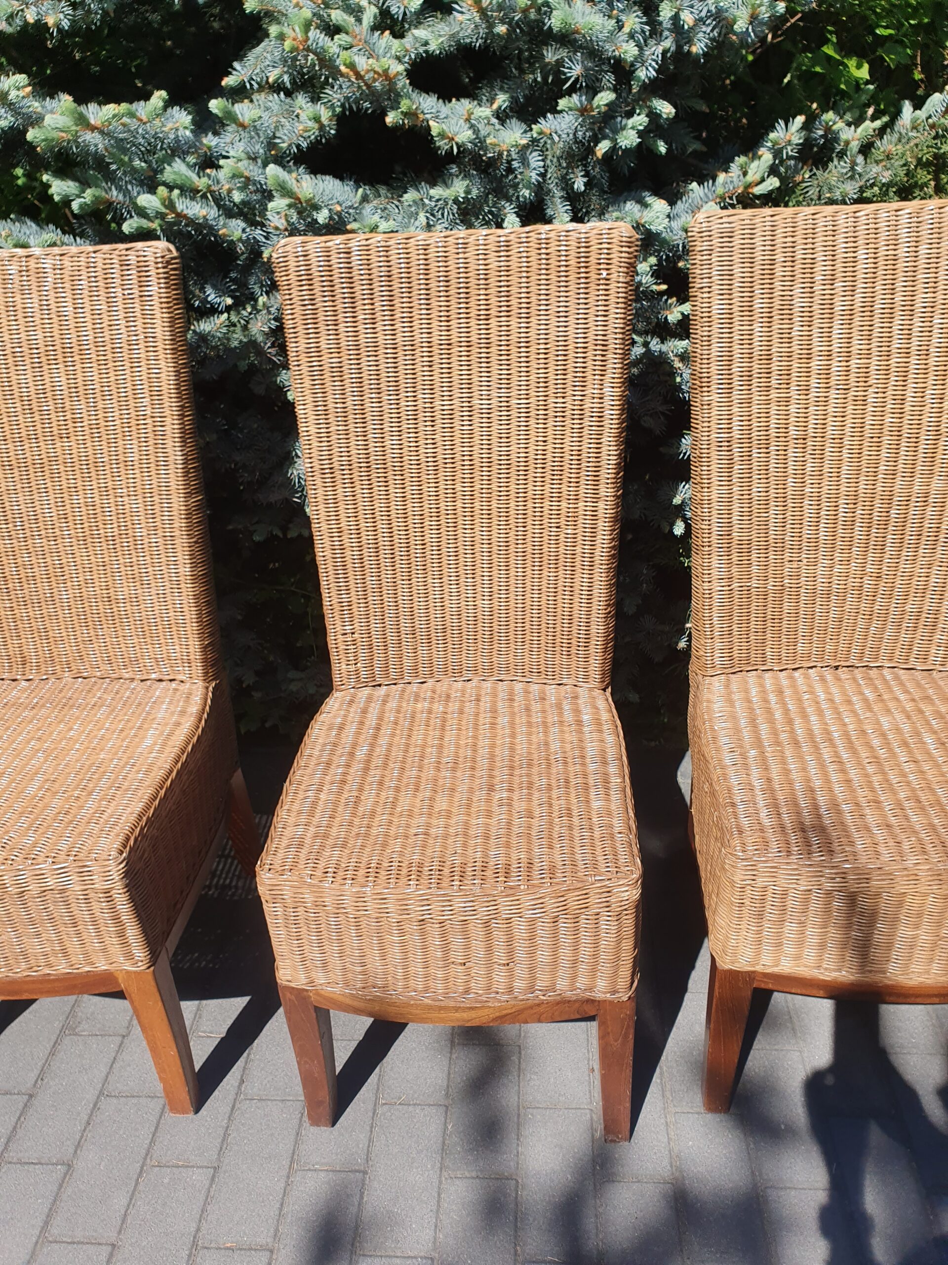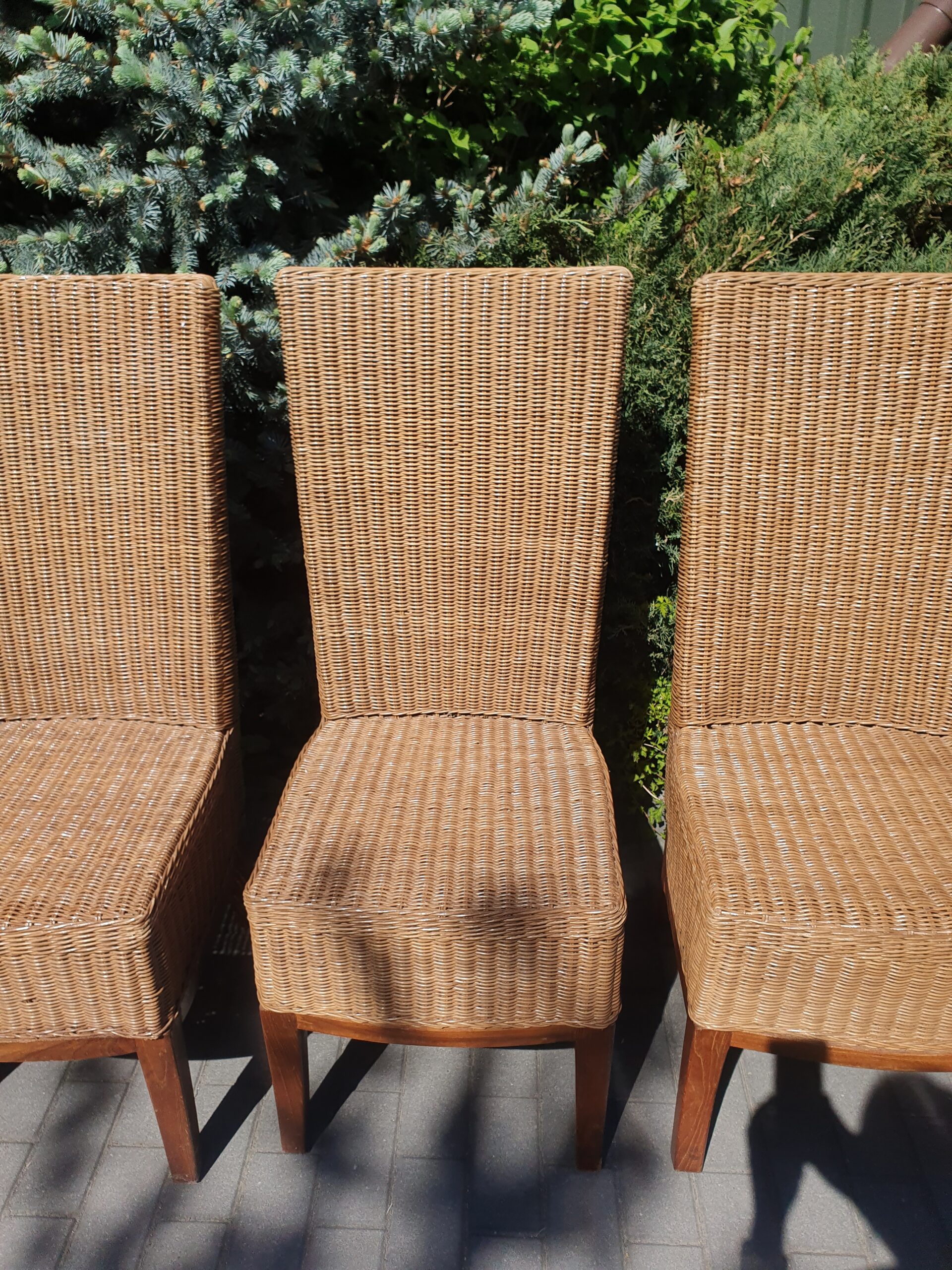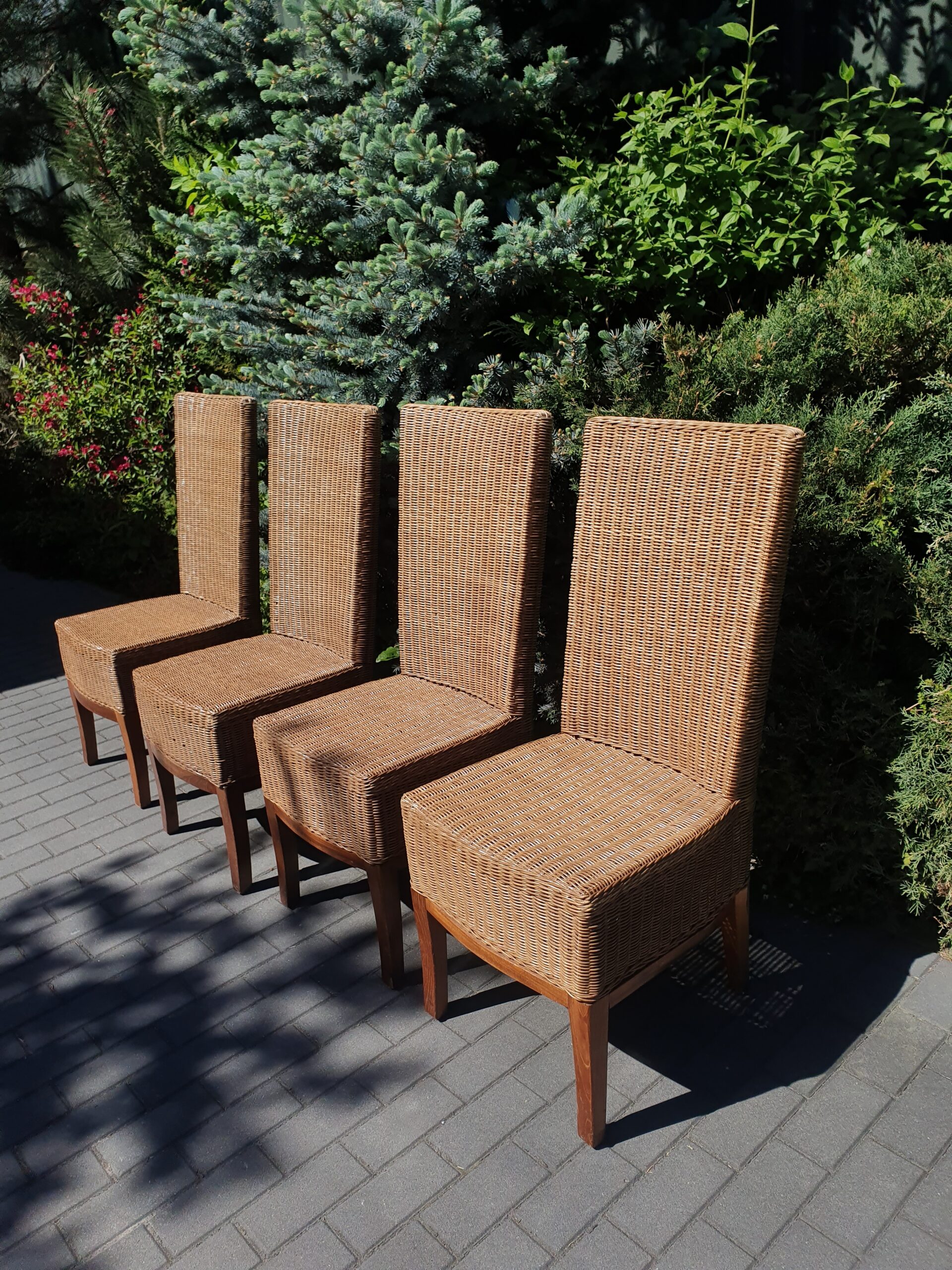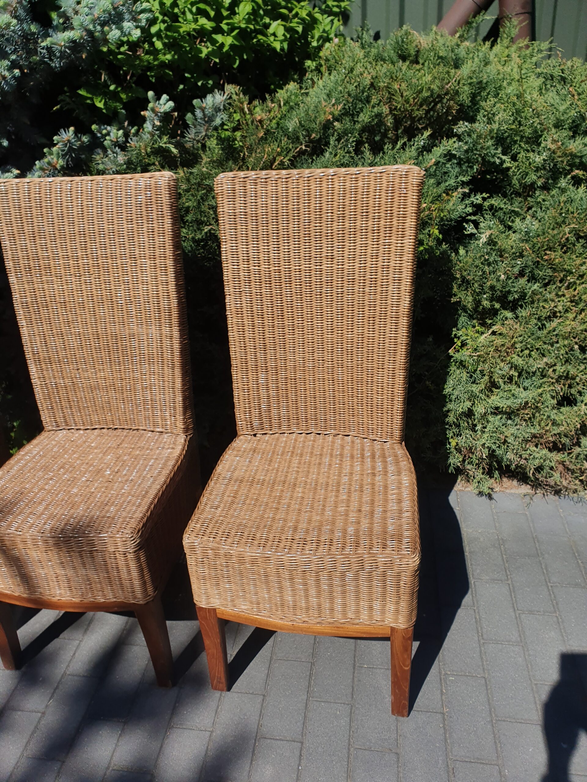 Śliczne krzesła ogrodowe wykonane z wikliny.