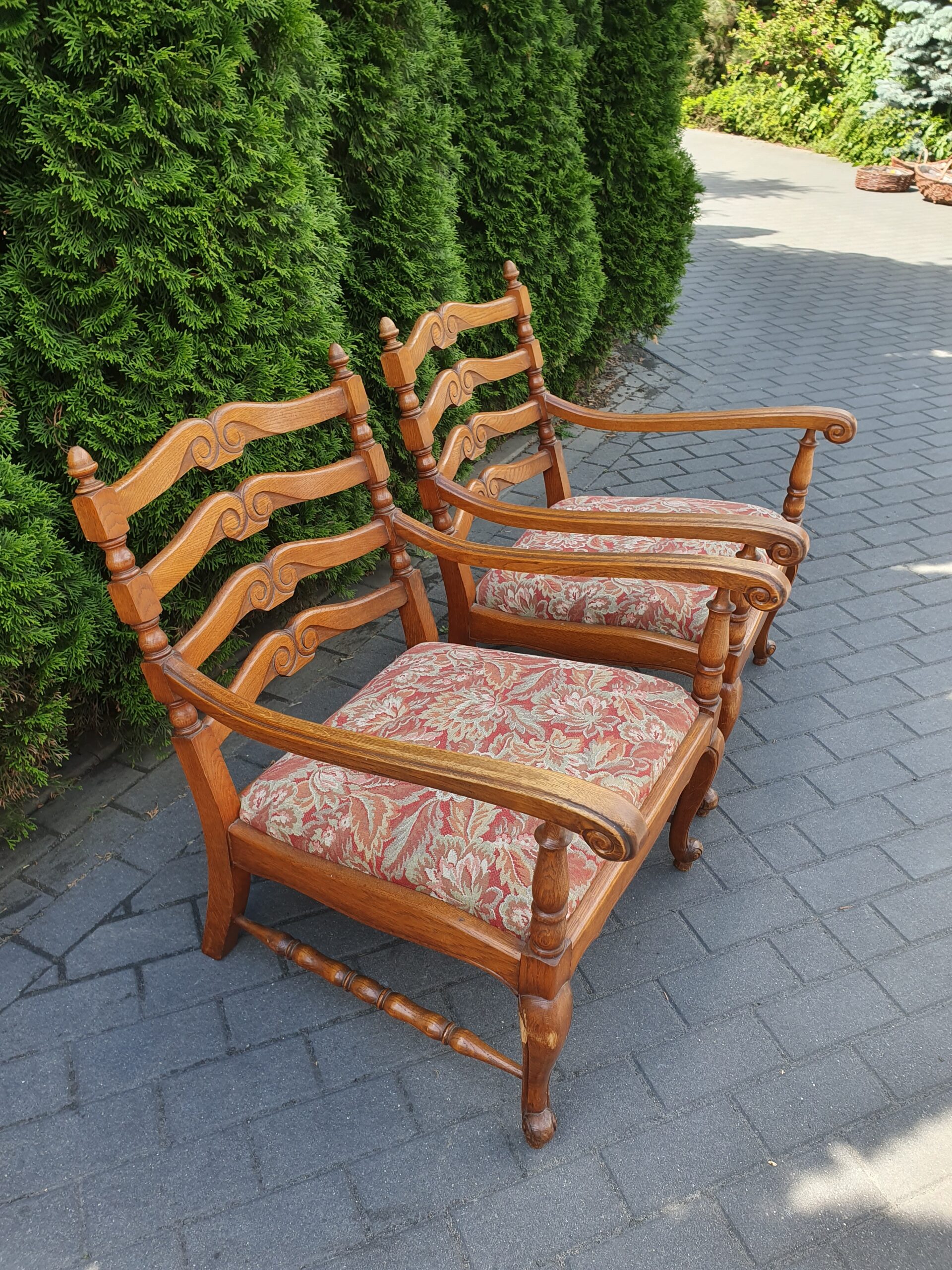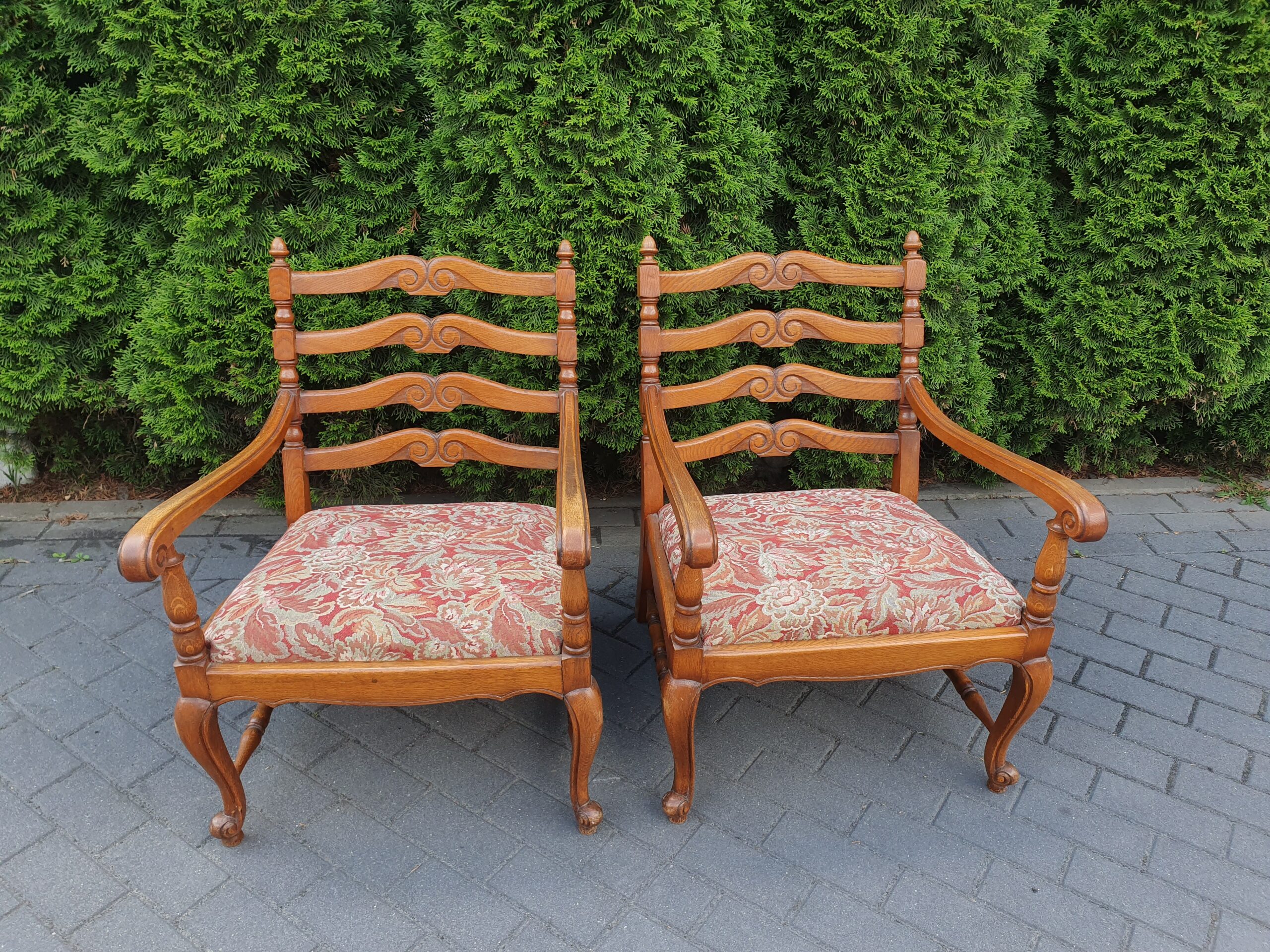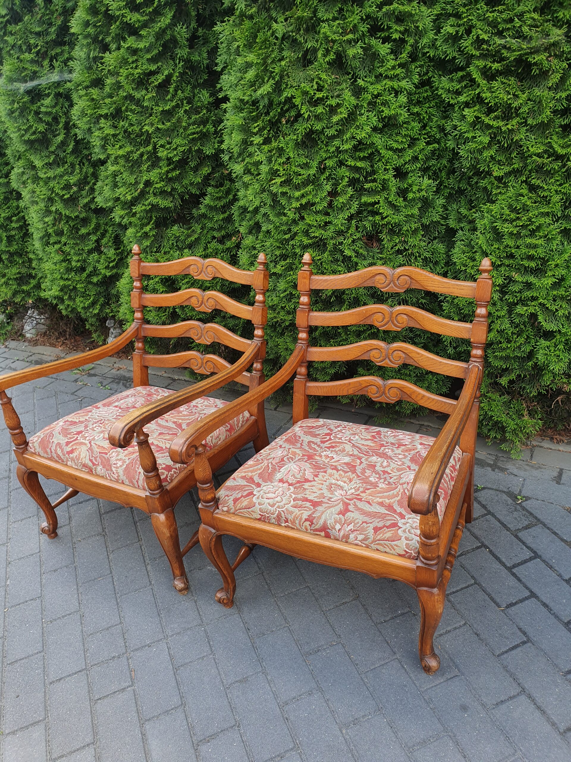 Ciekawe stare krzesło w stylu ludwikowskim. Krzesło obite nową tapicerką.