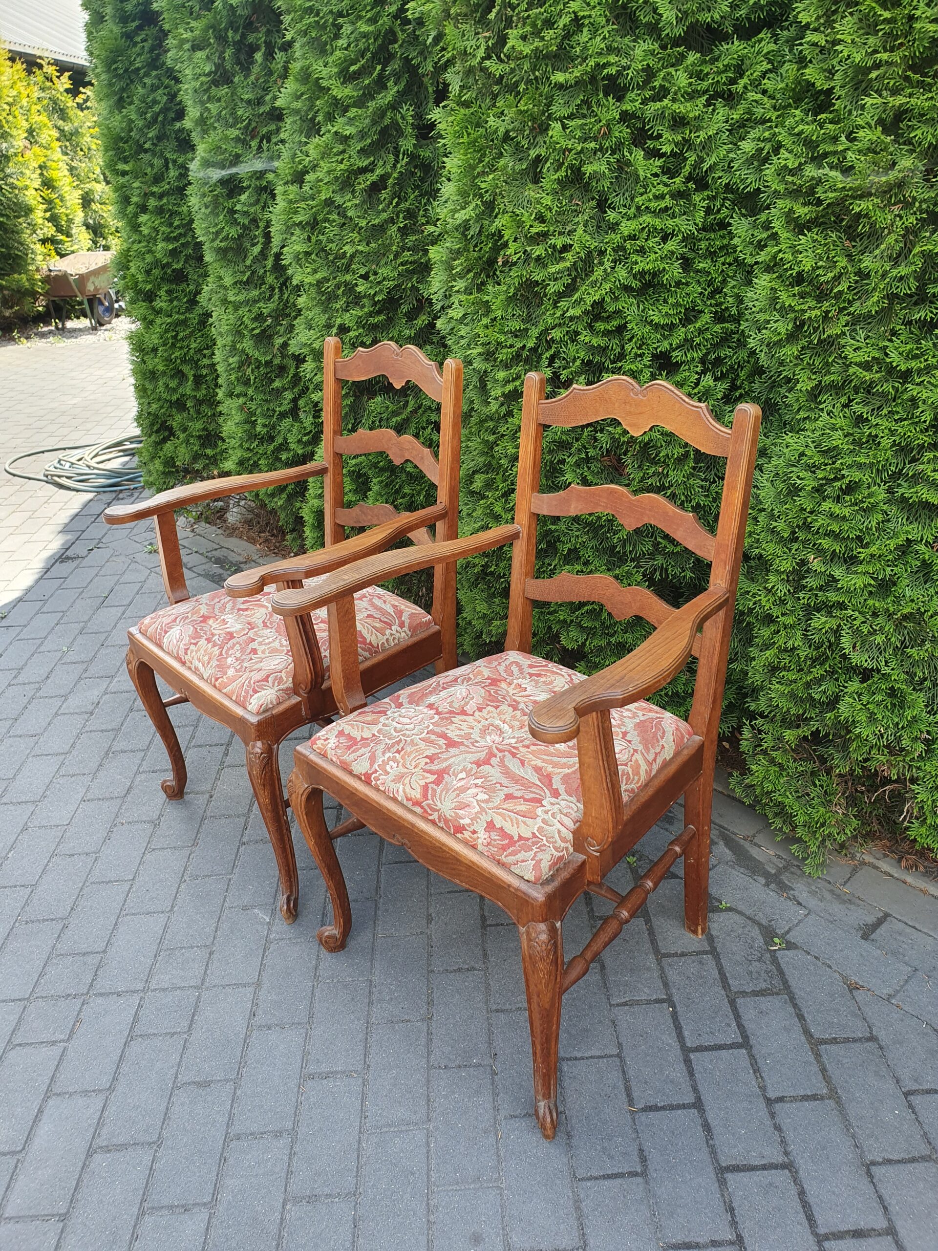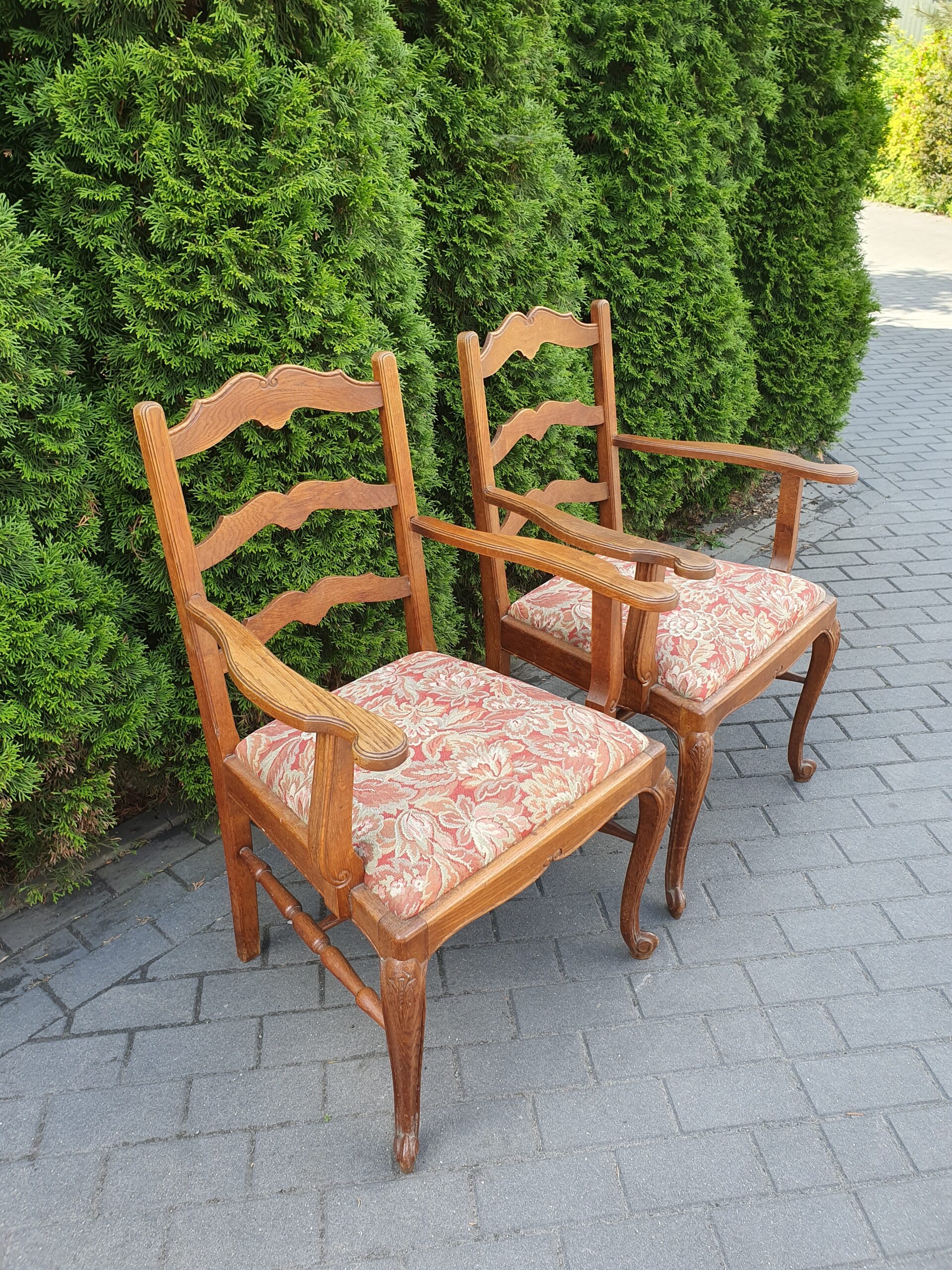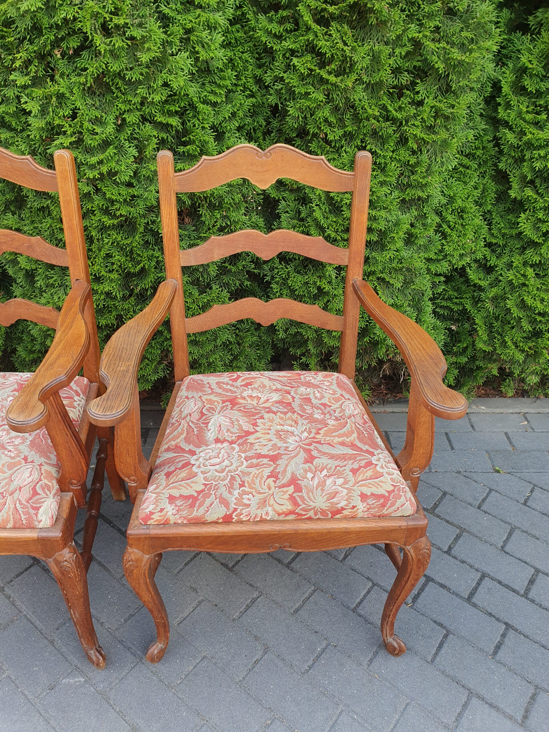 Ciekawe stare krzesło w stylu ludwikowskim. Krzesło obite nową tapicerką.