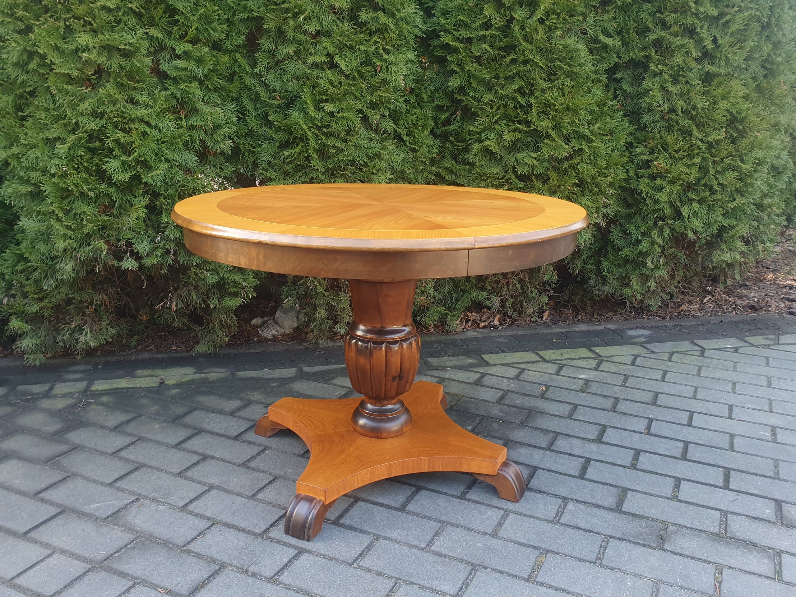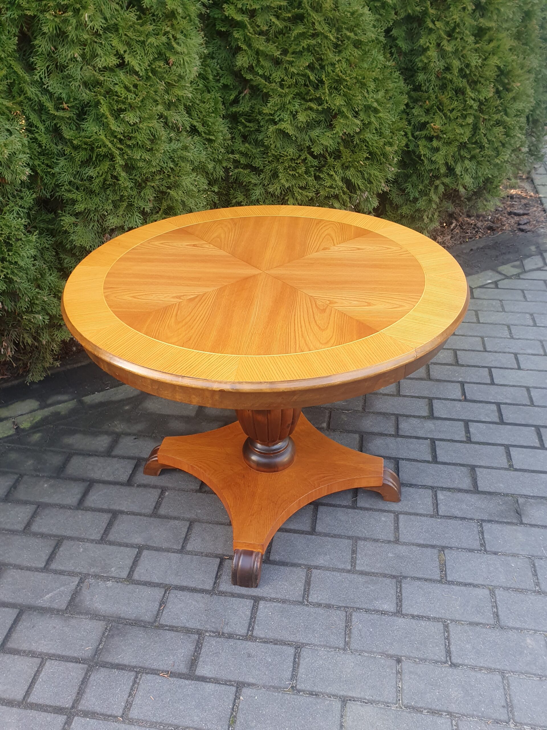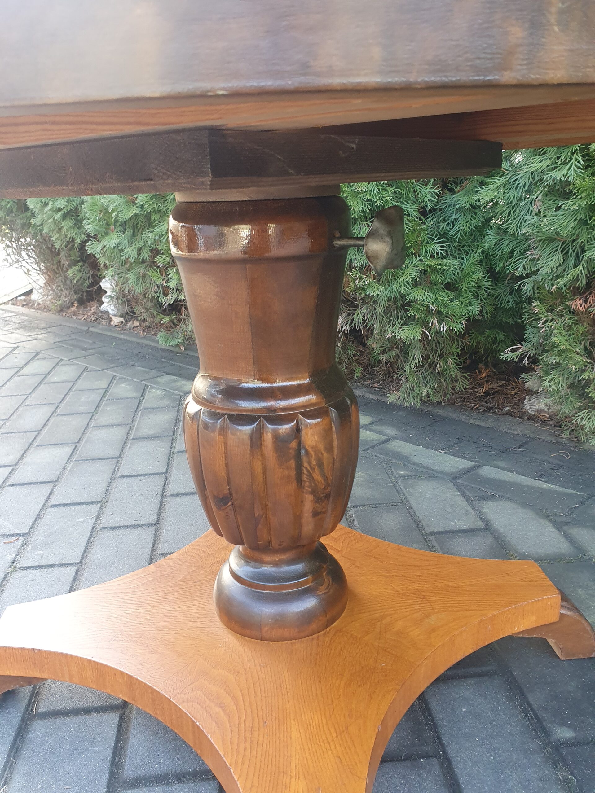 Rewelacyjny stolik kawowy z regulowaną wysokością. Stolik jest rozkładany, ale nie ma wkładki.