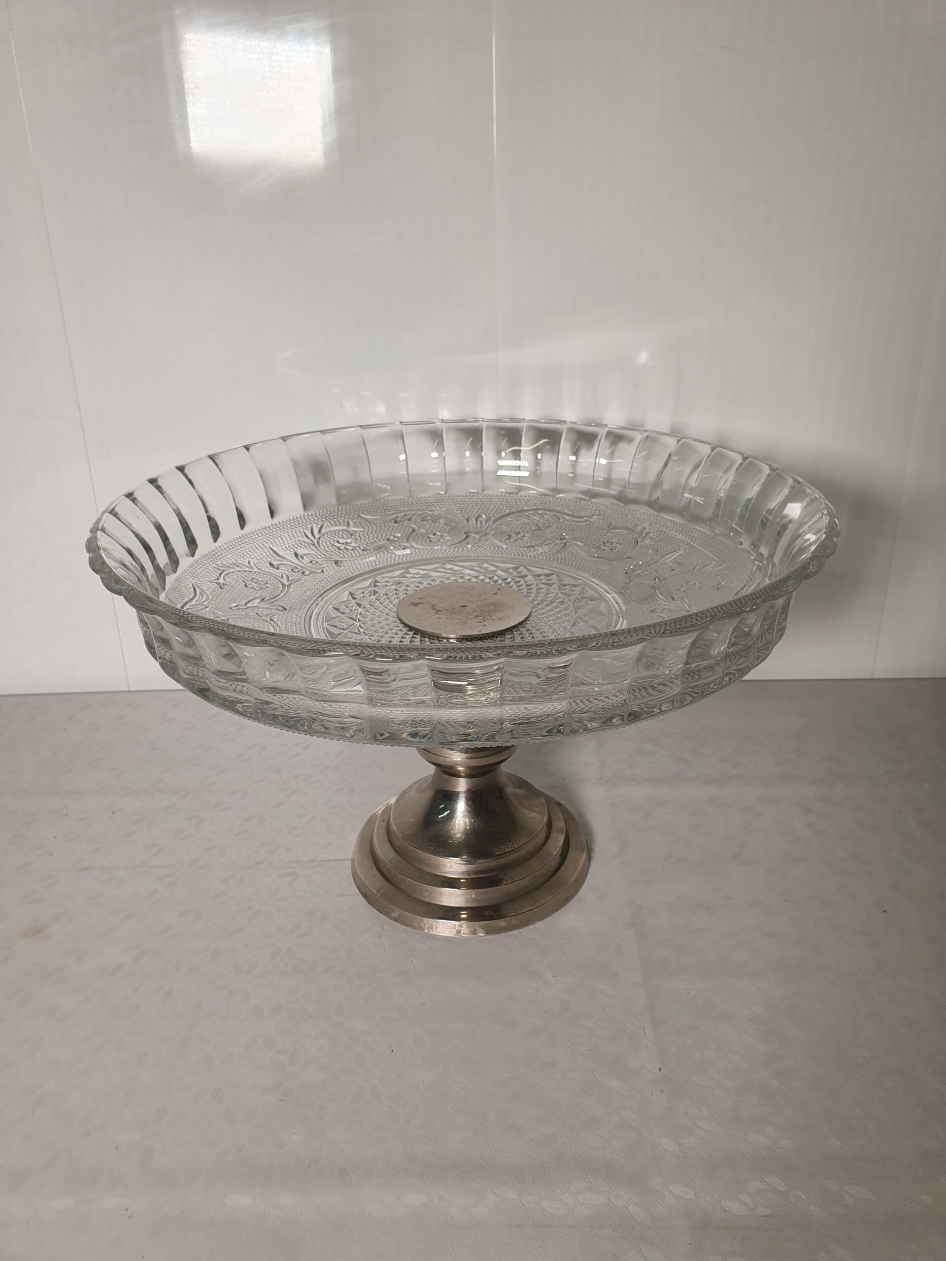 Szklana patera na nóżce. Idealna na ciasto.