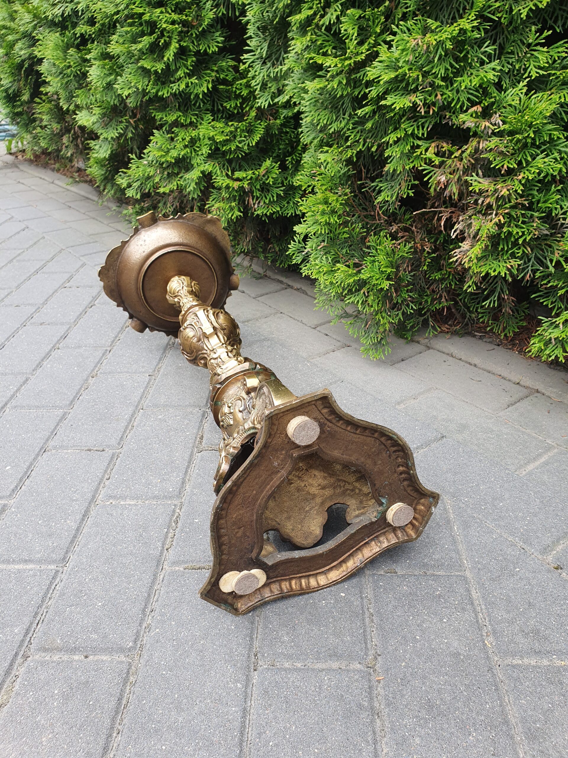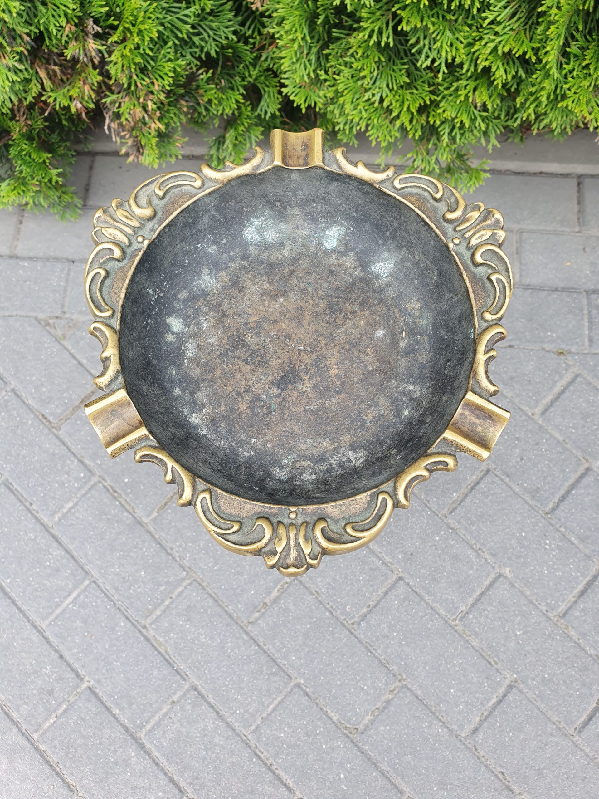 Zdobiona, solidna popielnica wykonana z mosiądzu.