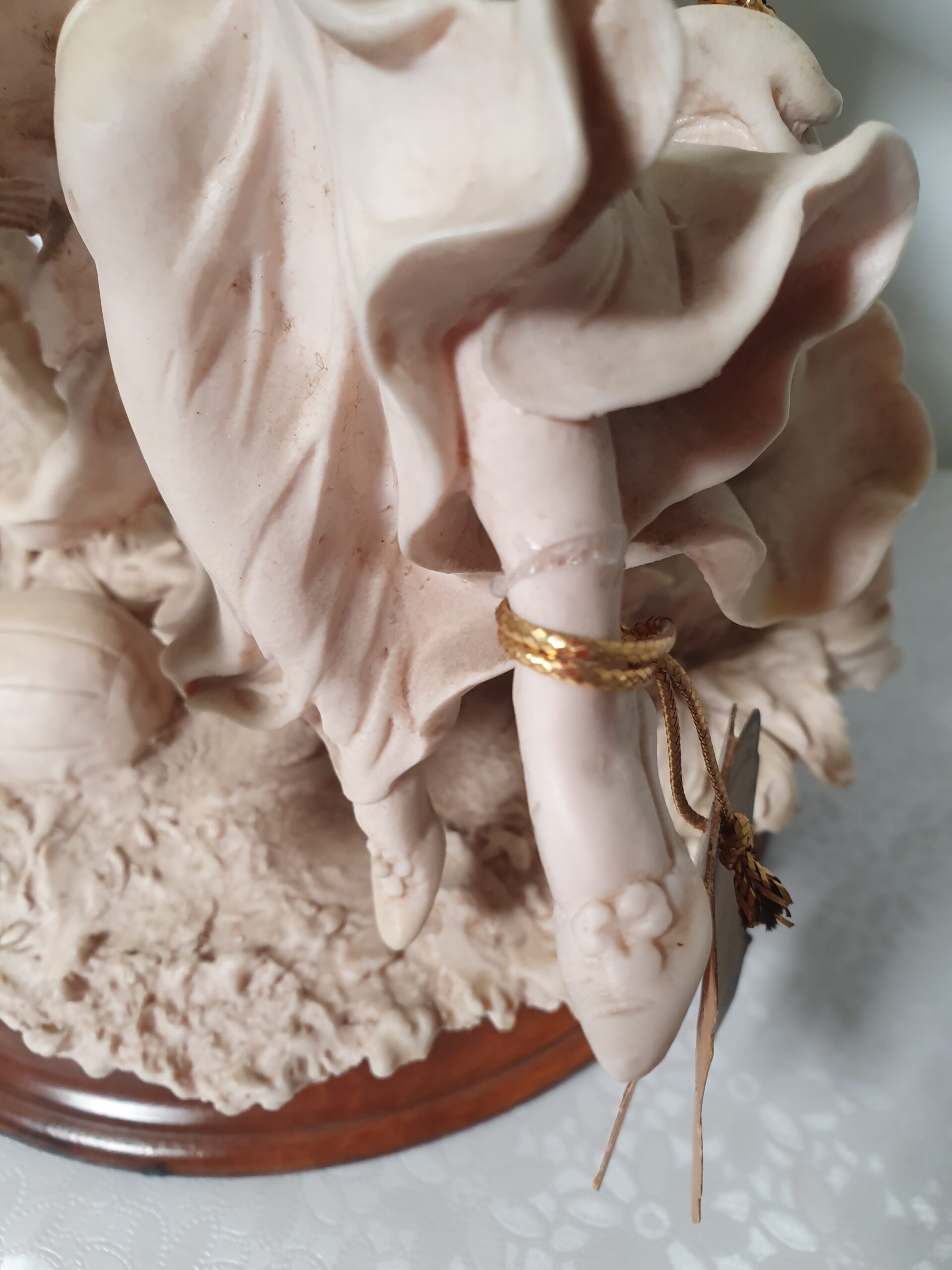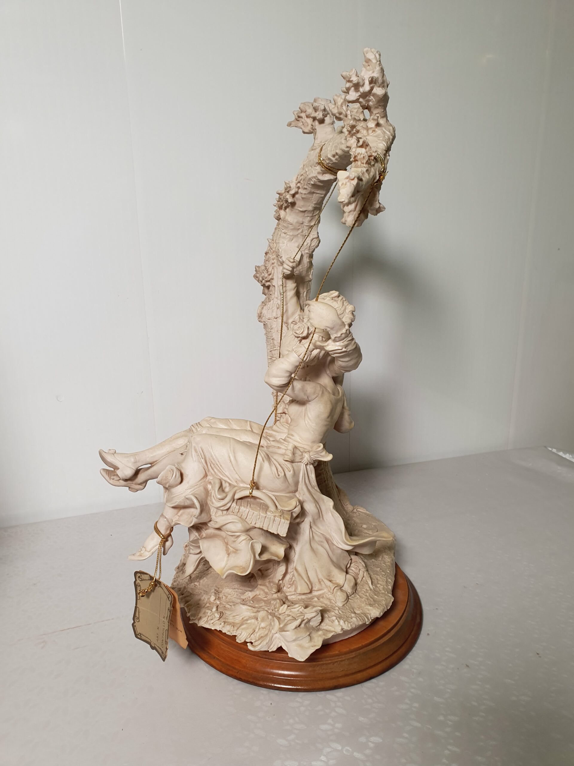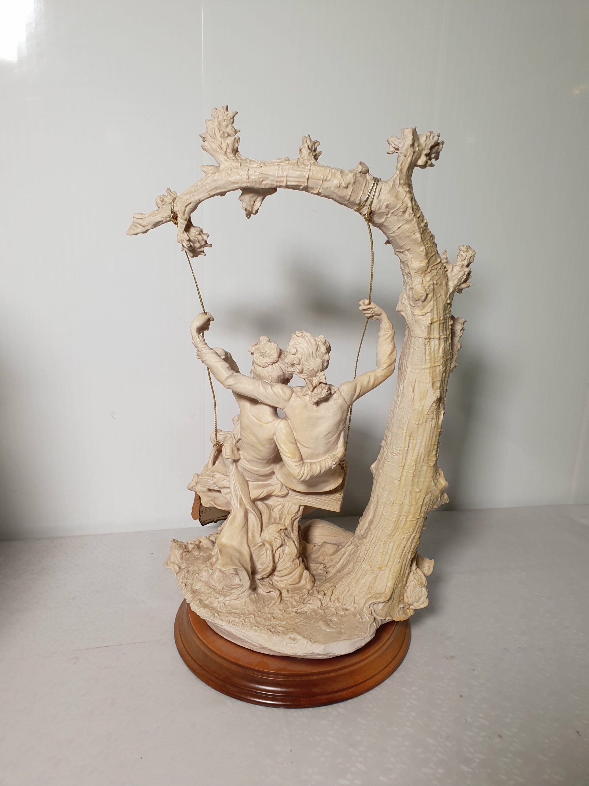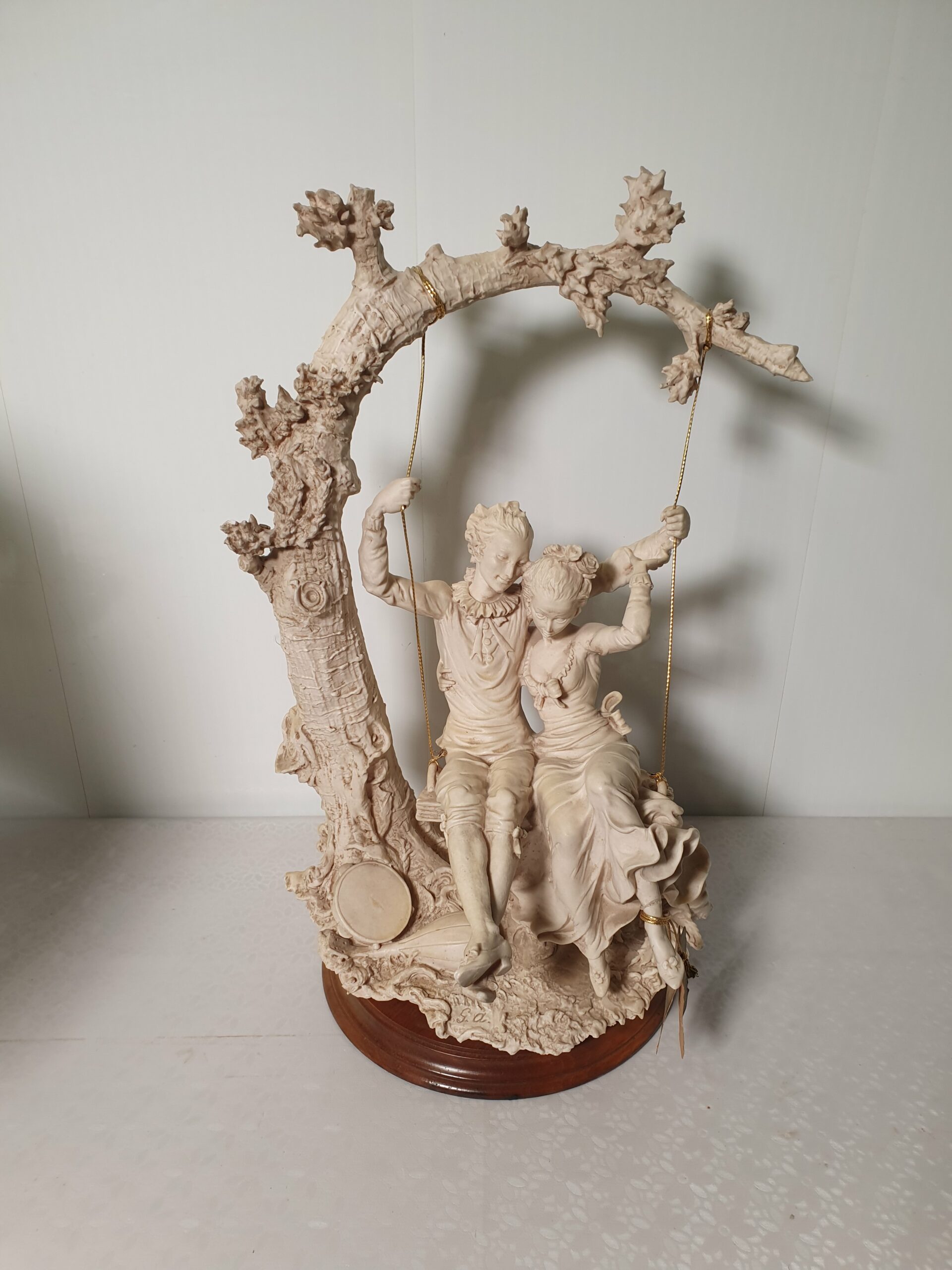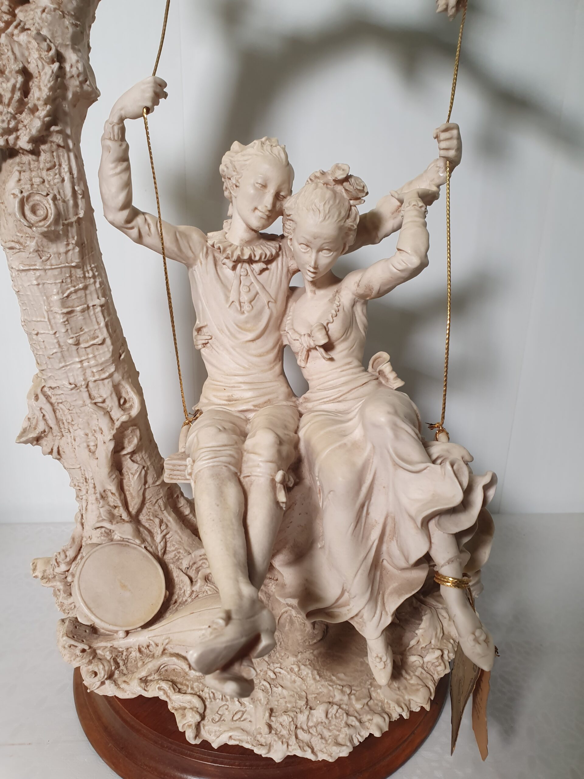 Rzeźba wykonana z alabastru przedstawiająca parę kochanków na huśtawce. Rzeźba posiada sygnaturę autora Giuseppe Armani, pochodzi z włoskiej manufaktury Capodimonte i posiada certyfikat.