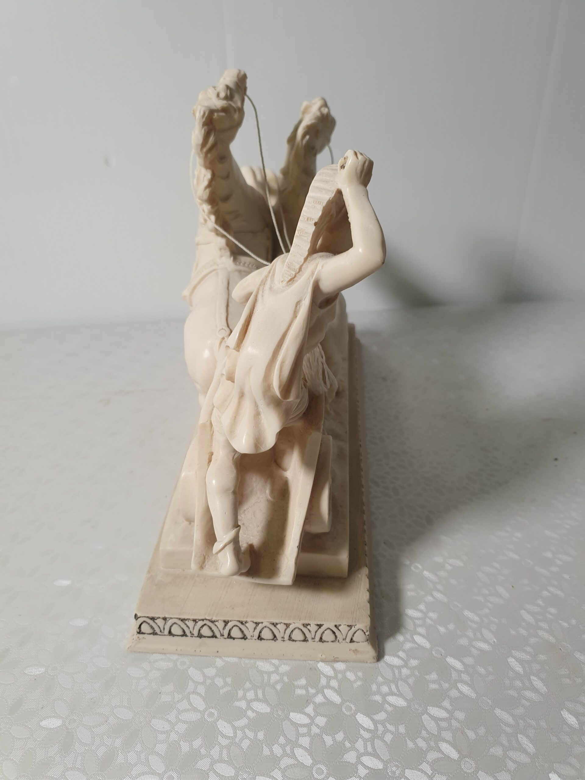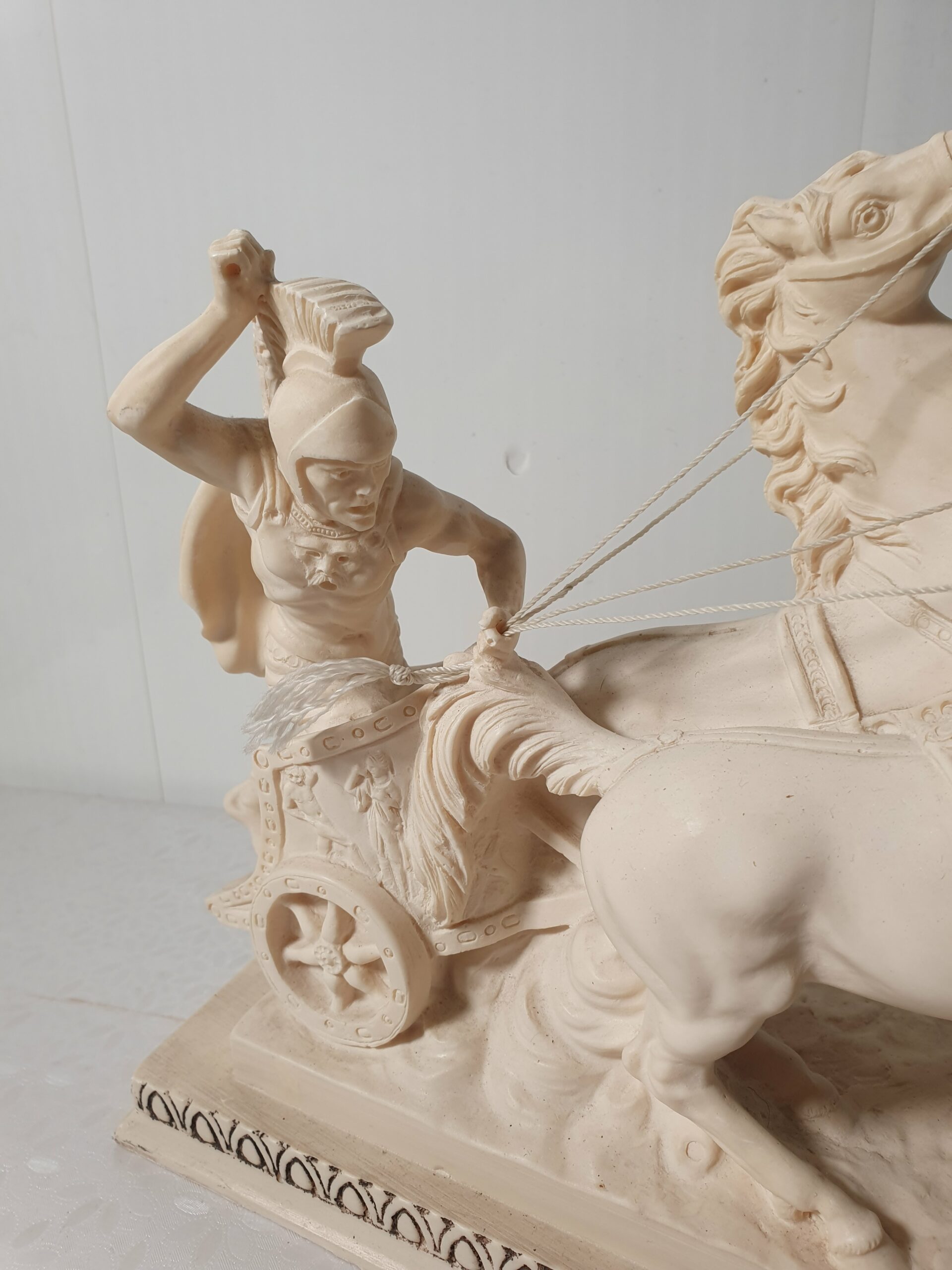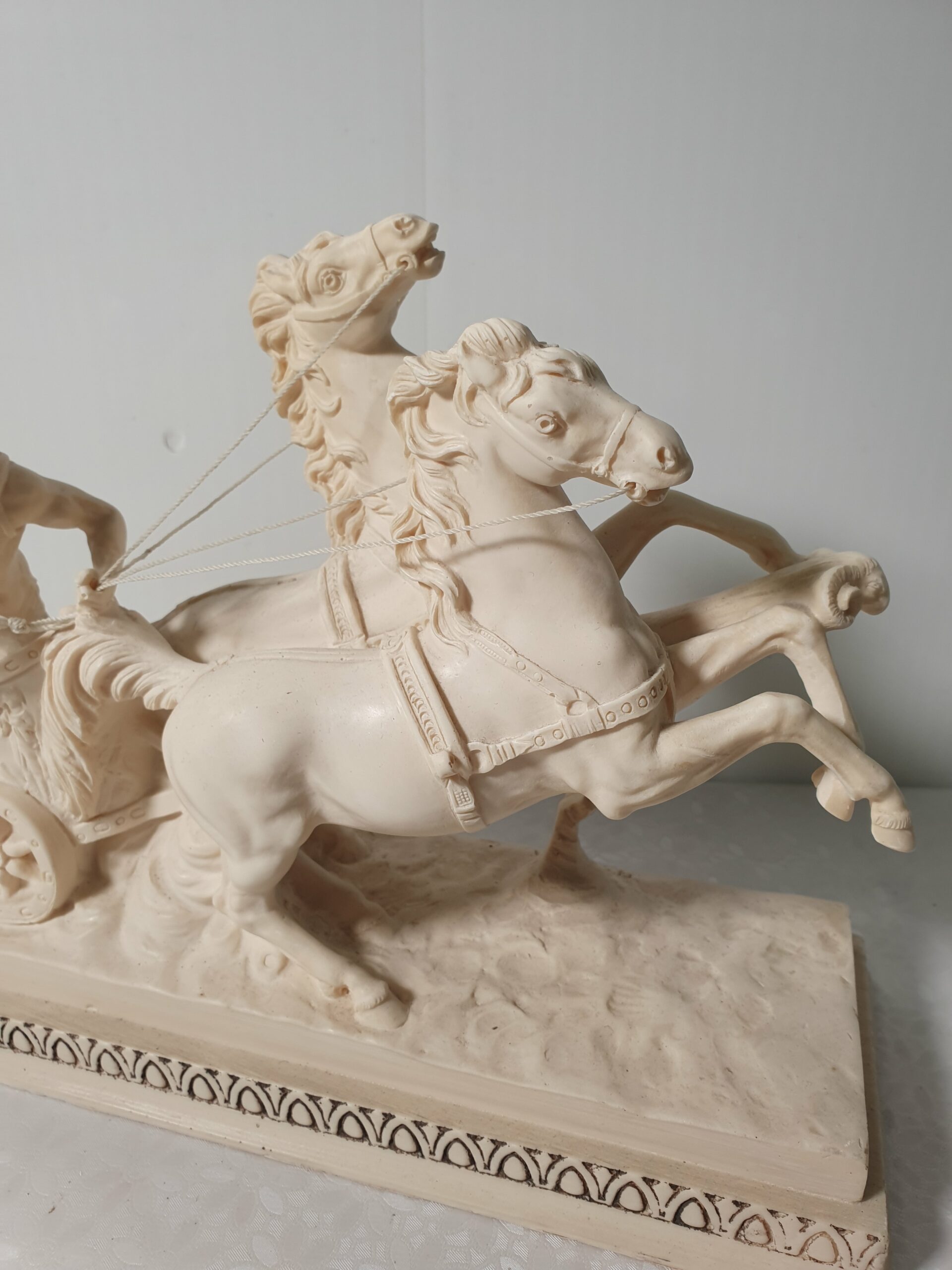 Rzeźba rydwan z zaprzęgiem. Figurka sygnowana.