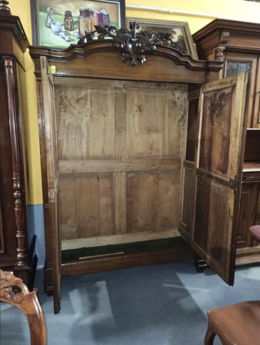 Piękna, stara, dwudrzwiowa szafa. Wnętrze szafy do własnej aranżacji, można dorobić drążek lub półki, w zależności od potrzeb nowego właściciela.