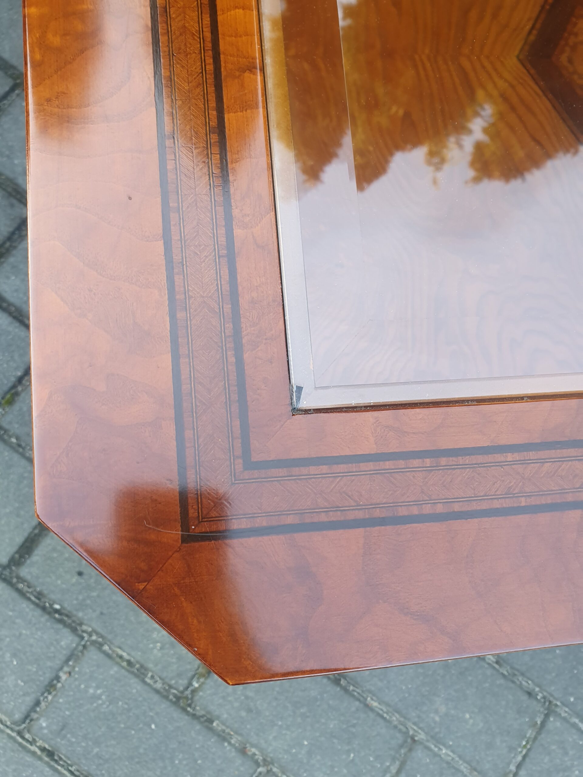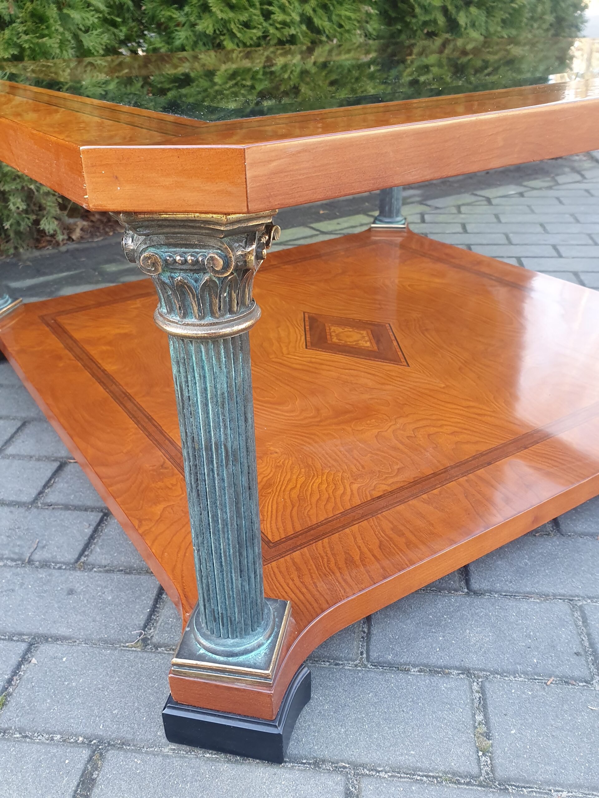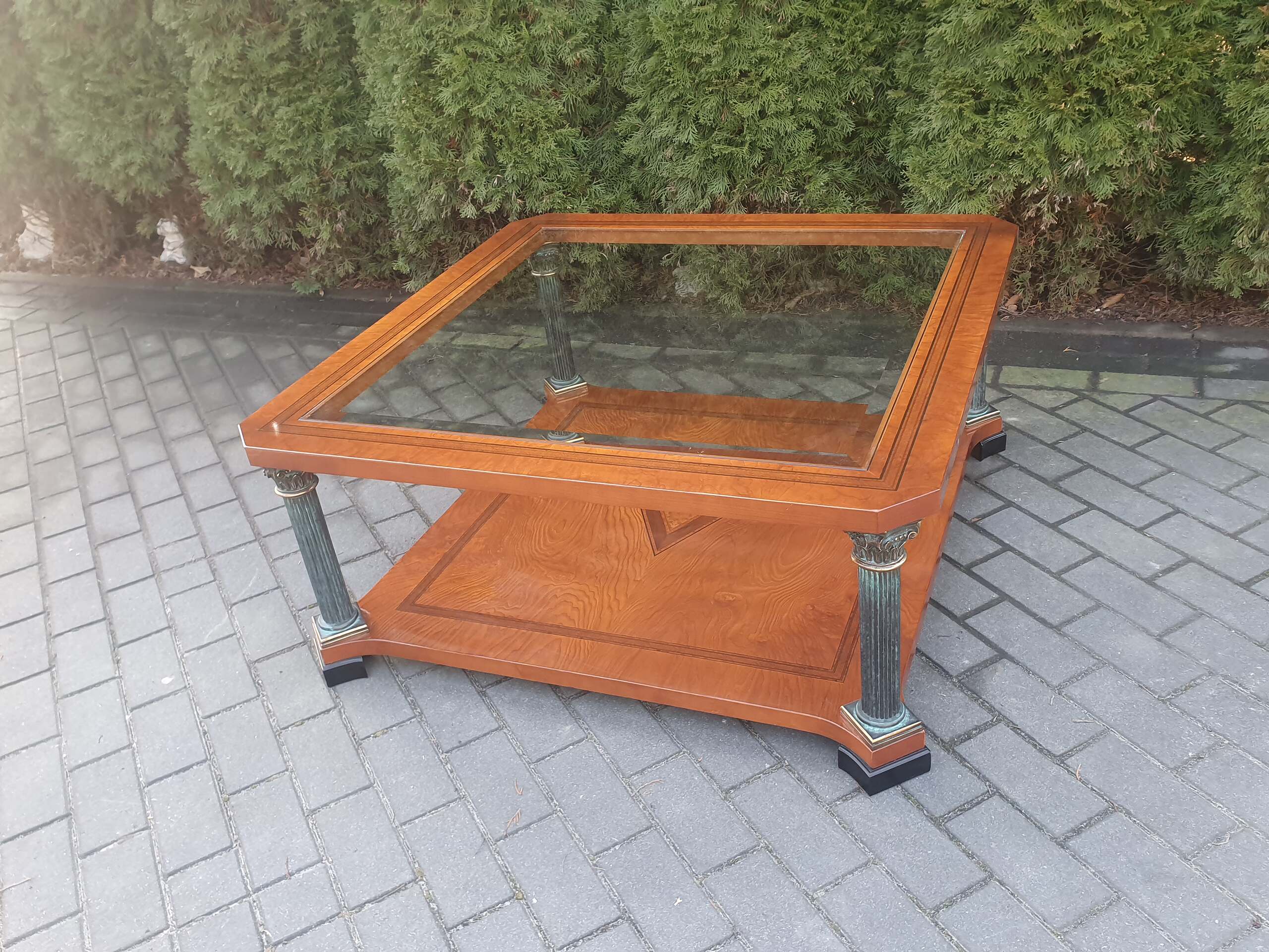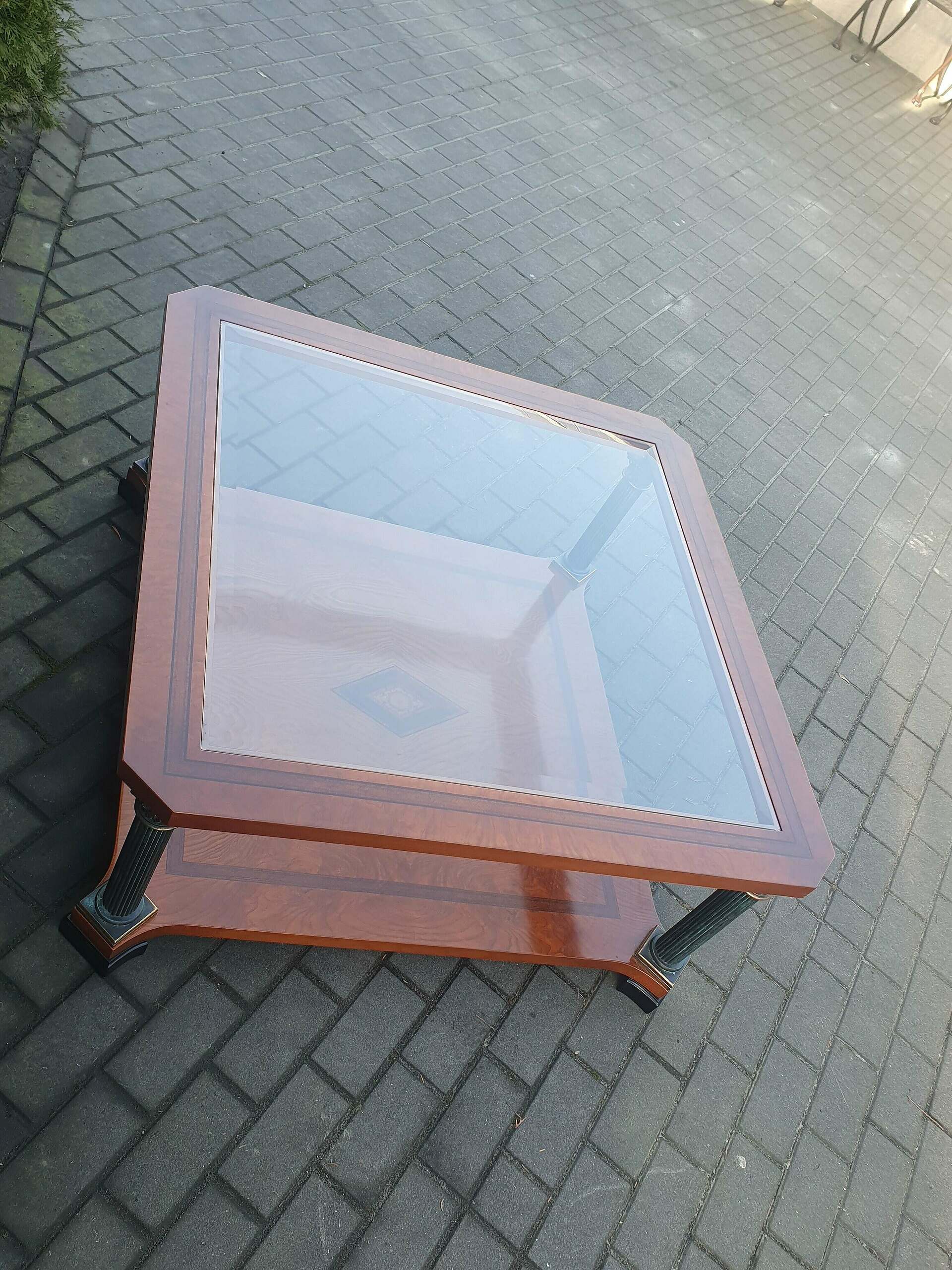 Śliczny stolik, ława kawowa. Mebel ozdobiony kolumienkami, intarsjami oraz fazowaną szybą.