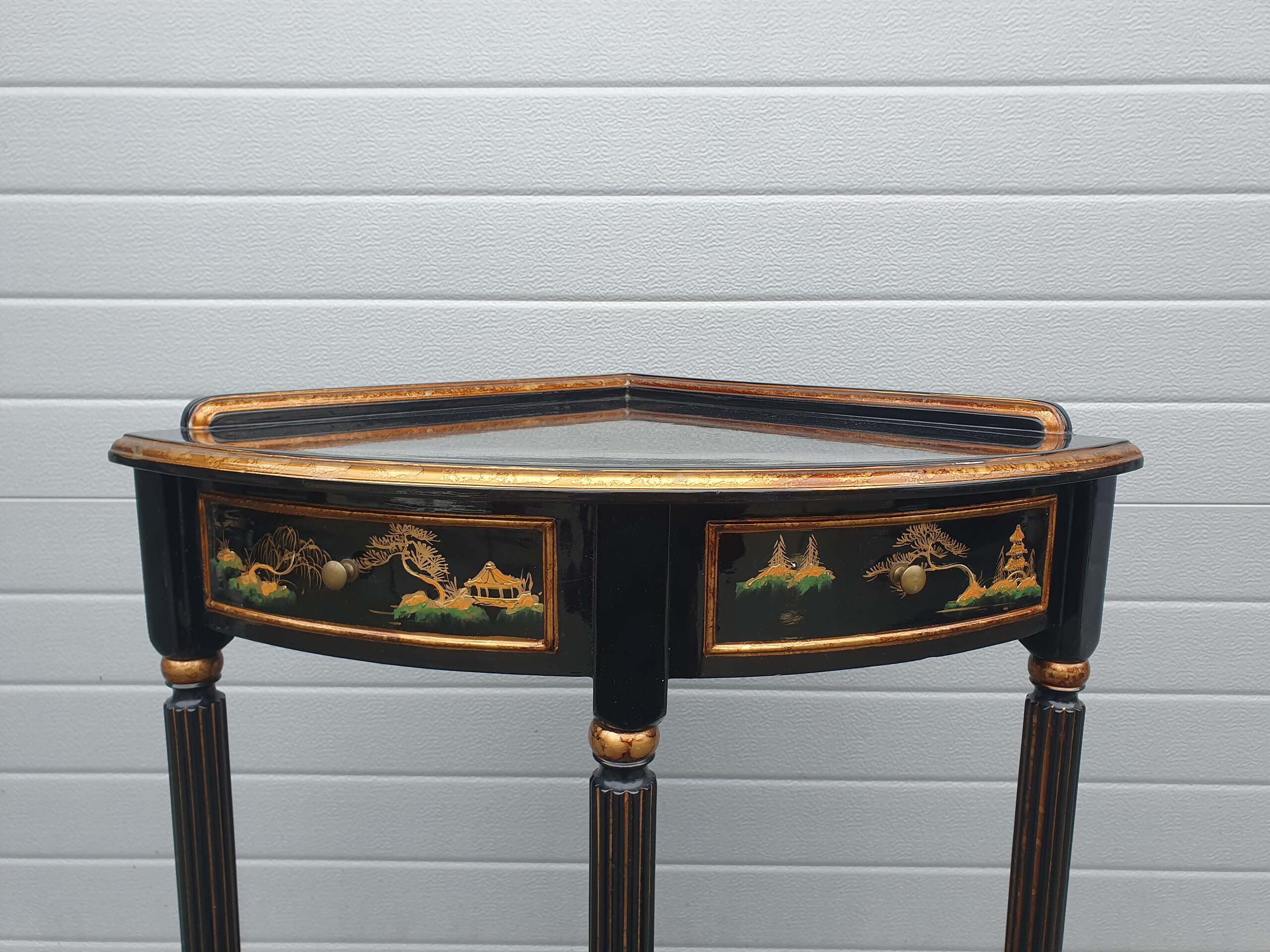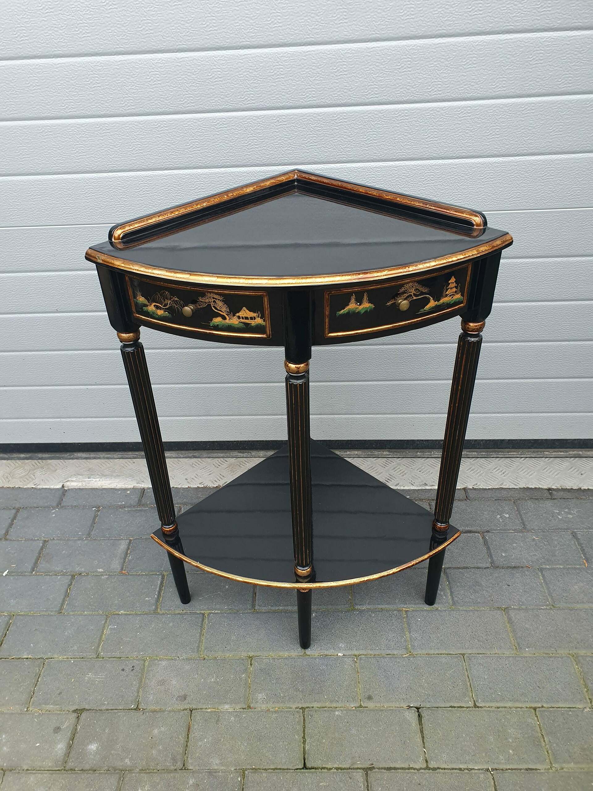 Śliczna, czarna szafeczka z imitacją szuflad.