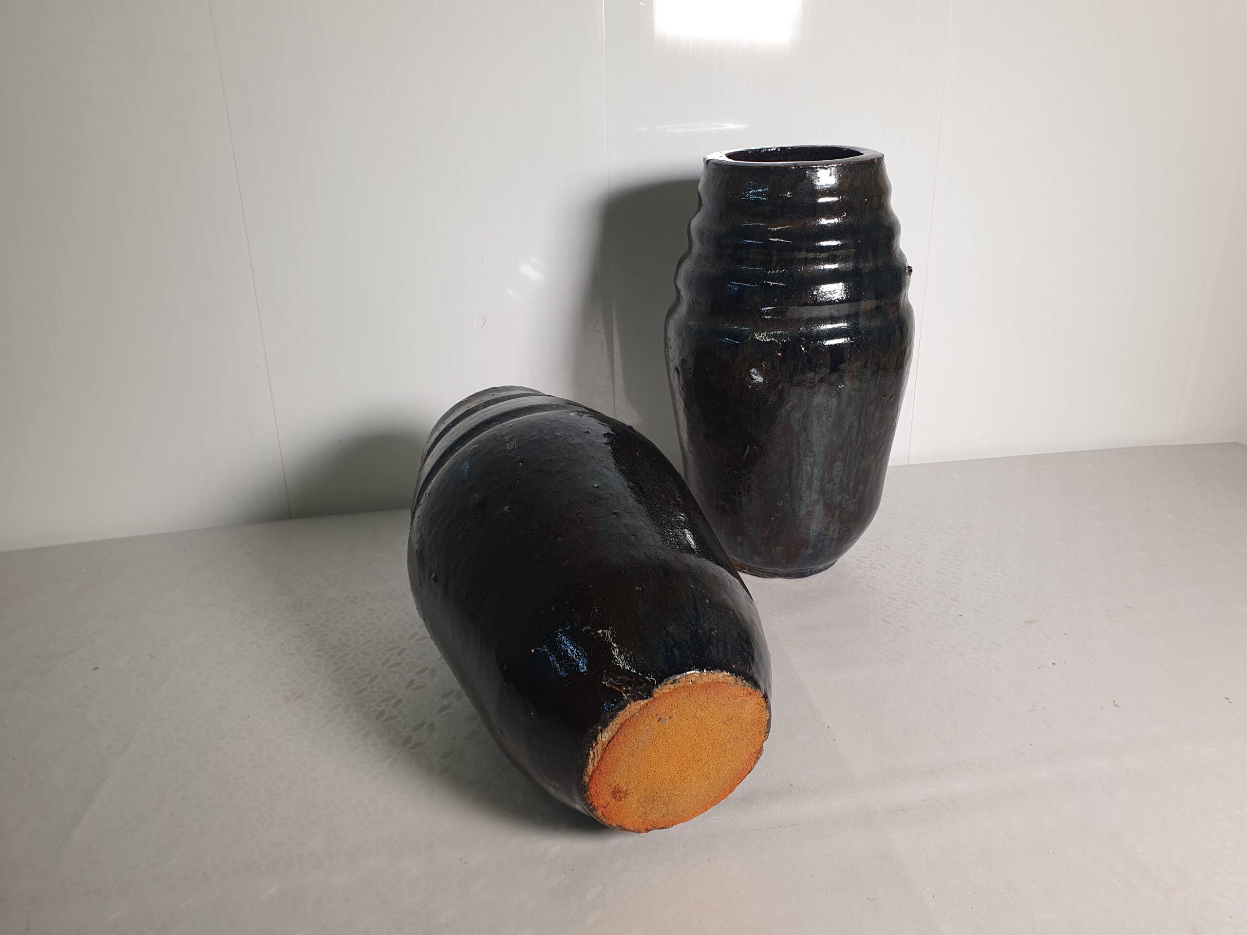 Ceramiczny wazon w kształcie beczułki. Solidny i ciężki. Zdjęcia nie oddają kolorów, które w rzeczywistości są dużo ładniejsze. Dostępne są dwie sztuki.